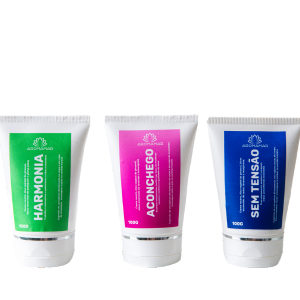 Composição: Creme neutro, óleo vegetal de girassol, óleos essenciais de lavanda e lemongrass.